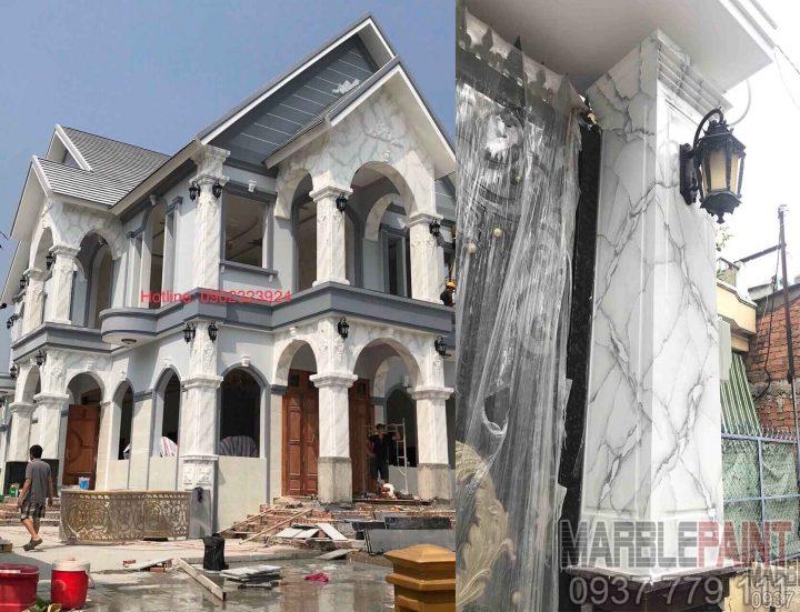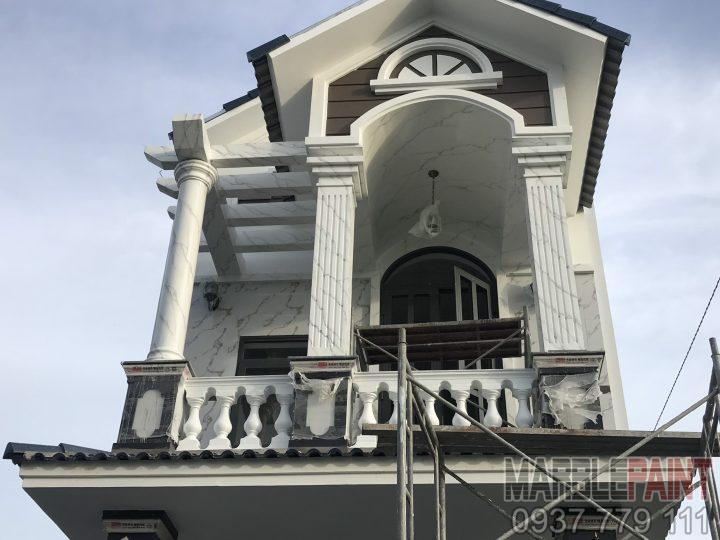 sơn giả đá mặt tiền nhà trong quá trình và  khâu hoàn thiện